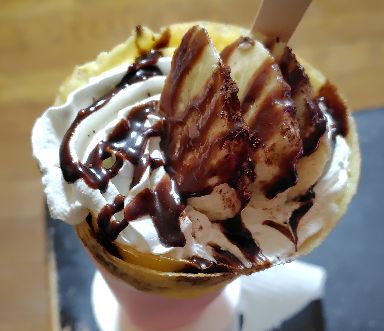 写真に写っていると思いますが、何故かクレープ100円引き券が貰えたたのでその場で使用。。。
