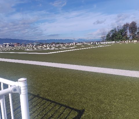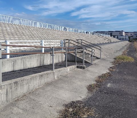 施設は近くの地盤高に比べ3m程盛土されています