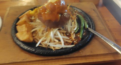 基本ハンバーグのお店なので何を食べるか=どんな種類のハンバーグを食べるかなのですが、オススメっぽいなんちゃってグリルハンバーグを注文