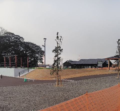 奥に遊具が見えます。