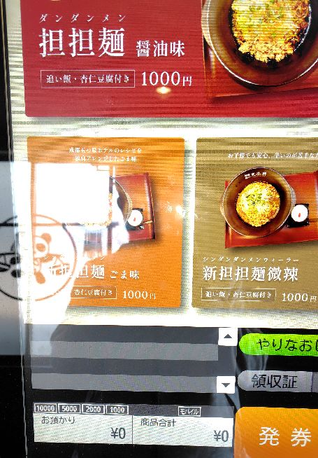 と言っても基本はタンタンメンで数種類のみ、そして価格も1000円均一なので会計もスムーズです(2027年4月)電子マネーも何個か対応していたと思います。